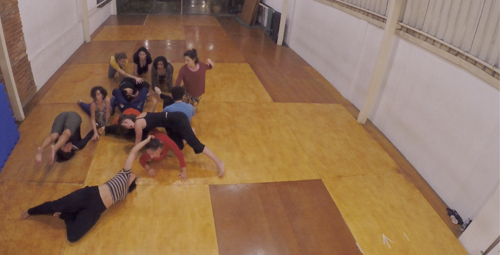 Como um saco de muitas roupas aleatórias começamos a experimentar cada uma delas com mais liberdade e desprendimento. Acho que foi a primeira vez que consegui me descolar um pouco mais da experiência, vê-la mais de fora e ao mesmo tempo estar super dentro da história, me envolvendo, descobrindo e me divertindo. O caminho a ser percorrido trazia um sentido, uma certa missão. Estamos bem grupais, tivemos dificuldade de experimentar a solidão. De repente eu e a Jaque nos descobrimos no meio de um rolamento e magicamente meus dois pés foram parar na sua bunda sem que eu visse, um encaixe perfeito, tudo em câmera lenta e podia sentir uma harmonia e uma tranquilidade geral na interação entre todes, um amor de troca e confiança recíproca. Me senti muito grata pela situação toda, pela entrega e intimidade que estamos construindo, com respeito e alegria. Muito bom estar com essa galera.